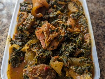 is a comforting and spicy Nigerian soup cooked with seasoned broth and herbs. (on prescription when you are down with flu or recuperating) adjustable spice level.